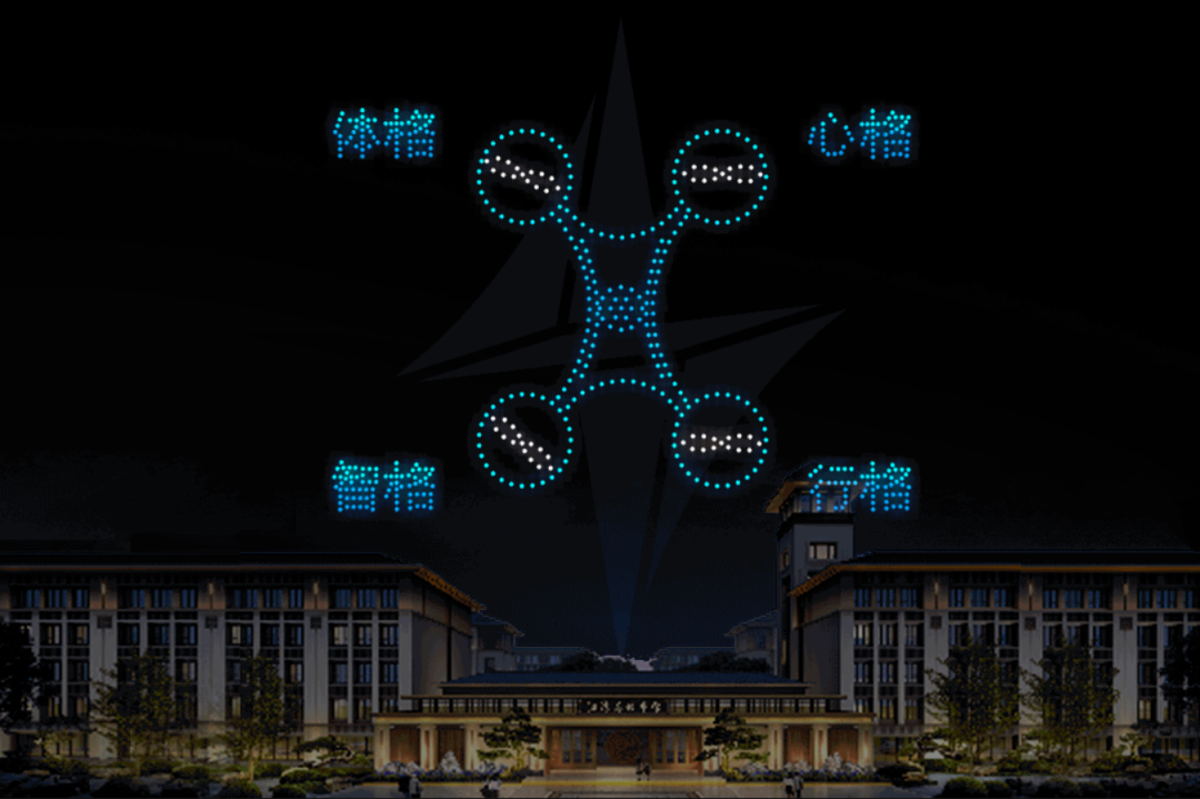 As you can see, the words "physique","mentality", "intelligence" and "action" are marked on the four rotor positions in the shape of the drone. This is exactly the "four-frame" education concept advocated by Jiangwan.